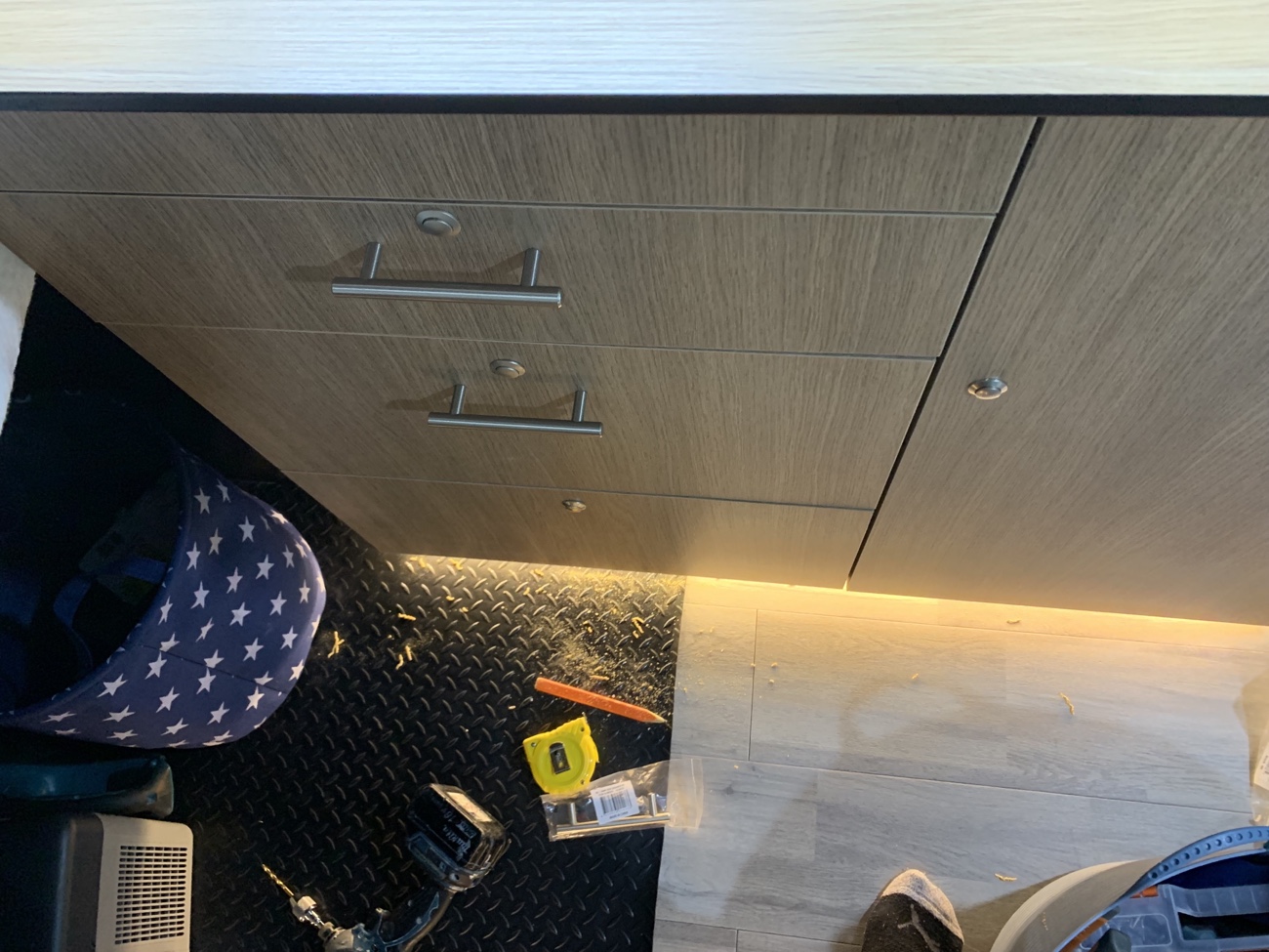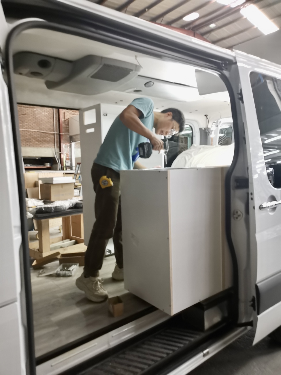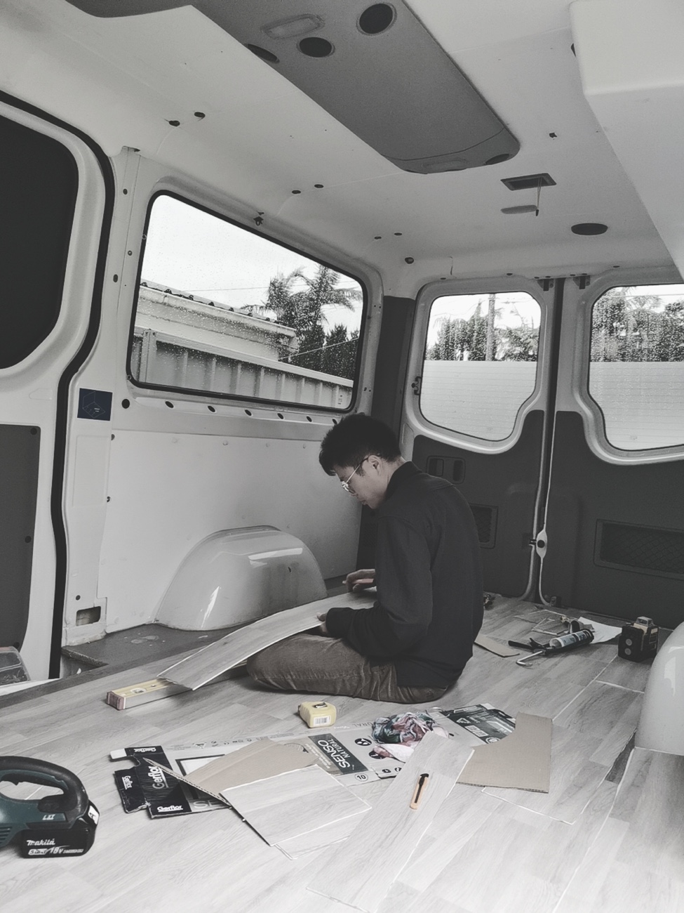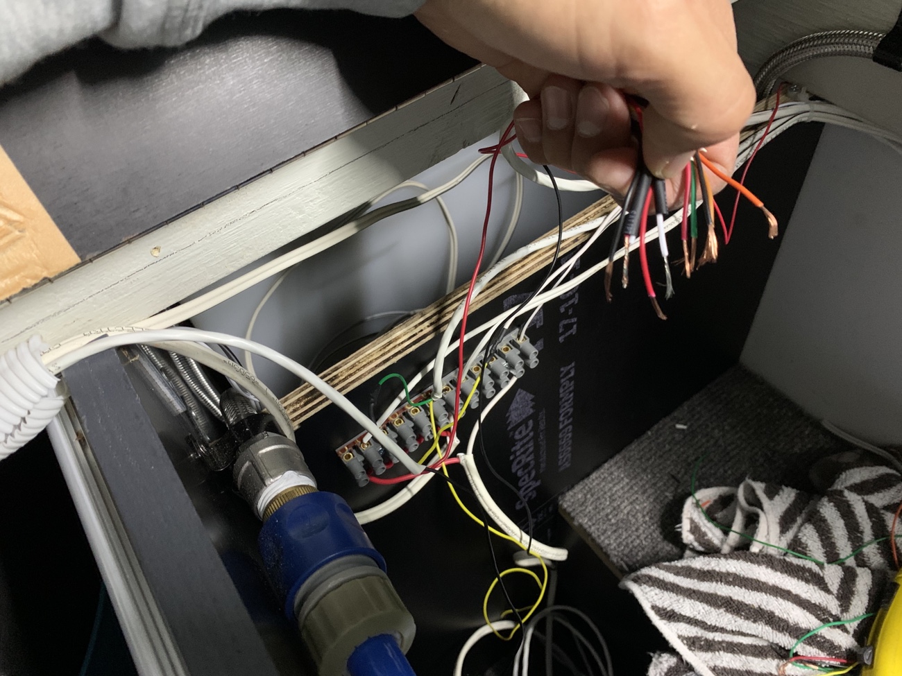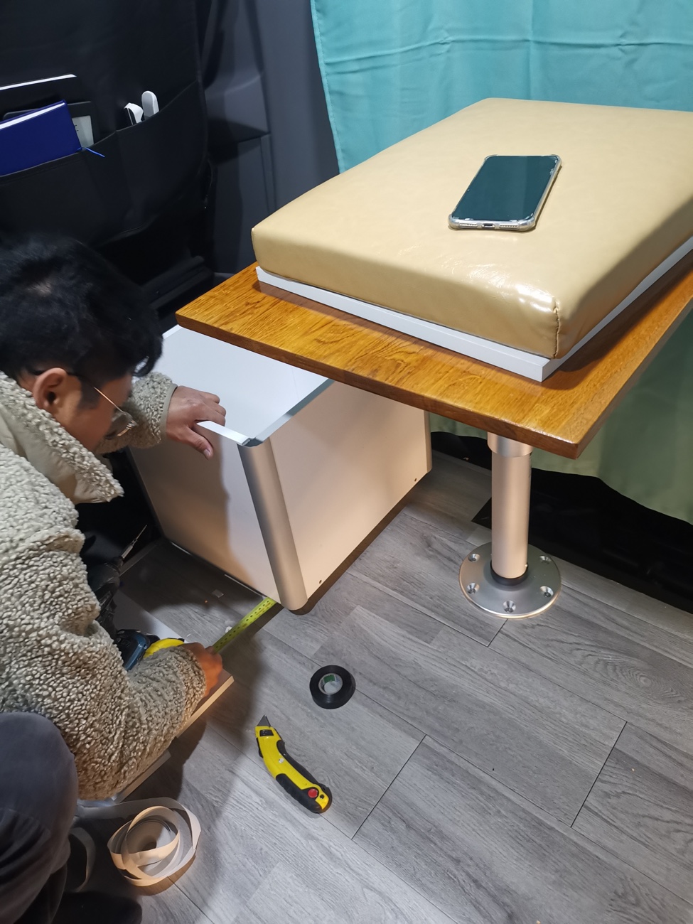 污水箱本来想安装在车子底盘下面,一直没有找到合适底盘的异形箱体,于是采用当地15L标准水箱,牺牲部分车内空间,但是为了方便排水,增加了污水水位传感器以及电磁阀门,当水快满时,在合适的地方,打开主仪表盘的电磁阀门电控开关,即可通过重力自动将污水经由车底盘管路排出。