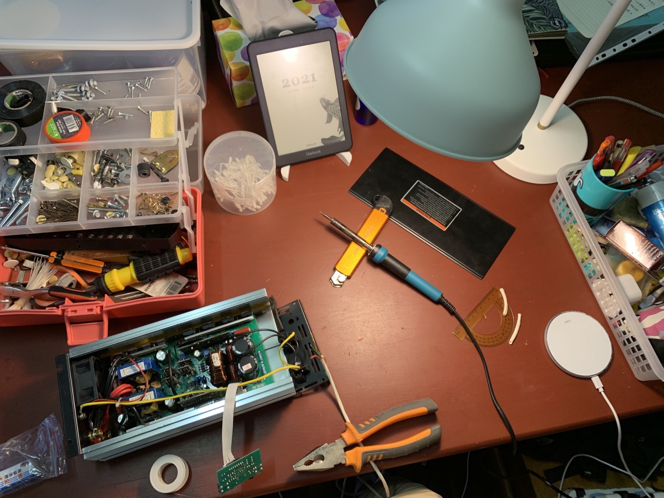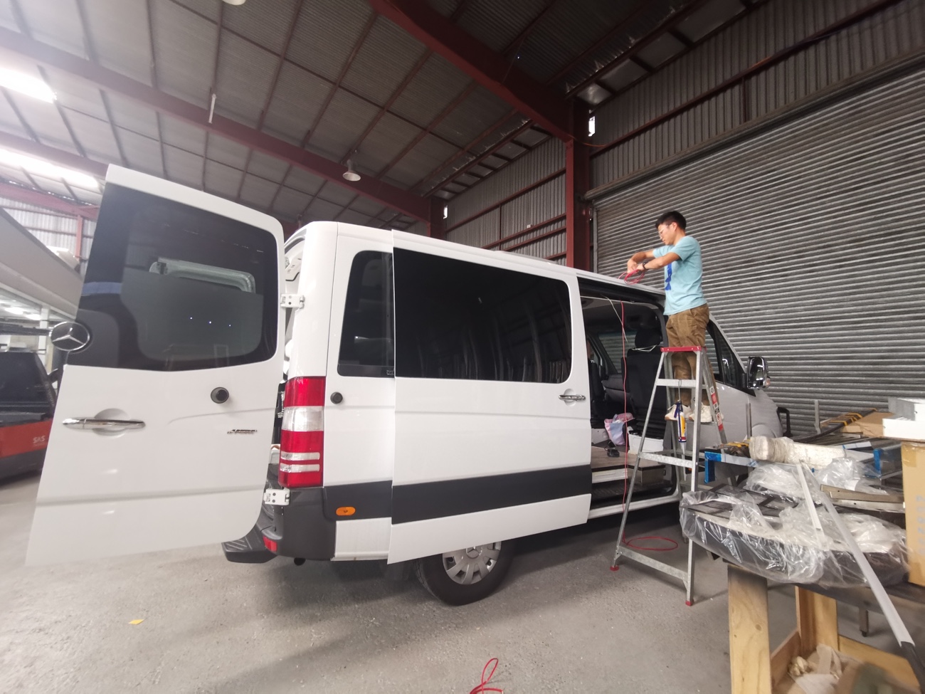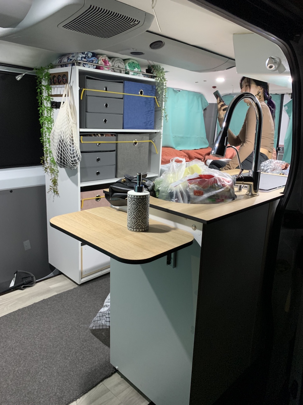 除了两个净水箱供水管路,还独立出一套饮用水管路,饮用水箱是当地连锁超市标准一次性10L饮用,喝完之后直接更换。