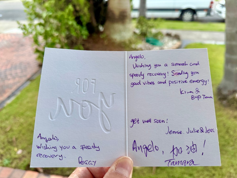 还好,没过多久,好友Guorium结束了当日监考老师的任务,就马不停蹄的赶过来探望我,特意带了四个西式手工饼,我则请他享用医院的免费伙食,Guorium的到来稍微平复了一下我的心情。